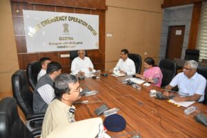 ભારત પાકિસ્તાન વચ્ચે ઊભા થયેલા યુદ્ધ તણાવની સ્થિતિમાં ગુજરાત રાજ્યના મુખ્યમંત્રી ભૂપેન્દ્ર પટેલની અધ્યક્ષતામાં એક બેઠક યોજાઈ હતી. રાજ્યનાં મુખ્યમંત્રી ભૂપેન્દ્ર પટેલની અધ્યક્ષતામાં સ્ટેટ ઈમરજન્સી ઓપરેશન સેન્ટર ખાતે બેઠક યોજવામાં આવી હતી. જેમાં ગૃહરાજ્ય મંત્રી હર્ષ સંઘવી, સેનાની ત્રણેય પાંખના અધિકારીઓ તથા ઉપસ્થિત રહ્યા અને બીએસએફના આઈજી અને પોલીસ વડા વિકાસ સહાય ઉપસ્થિત રહ્યા હતા. મુખ્યમંત્રીએ સરહદી જિલ્લાની સ્થિતિની સમીક્ષા કરી હતી અને રાજ્યના અન્ય જિલ્લાઓમાં સ્થિતિ અને સતર્કતા સંદર્ભે ચર્ચા કરી હતી. જેમાં કચ્છ, પાટણ અને બનાસકાંઠા જિલ્લા કલેક્ટર તથા એસપી સાથે સમીક્ષા કરી હતી, જેમાં રાજ્યના અન્ય જિલ્લાઓના કલેક્ટર એસપીને પણ વિડીયો કોન્ફરન્સથી જોડાયા હતા.